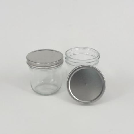 带螺纹口的玻璃瓶,配有镀锡铁皮盖,盖子中心钻一个直径约1mm的针孔。